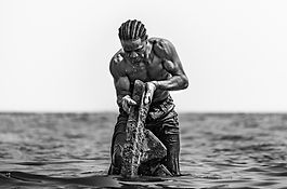 While the groups of older, more organized men work with blowtorches to cut the iron plates, the Titanic gang has to improvise. They dive endlessly, blindly groping the bottom of the bay with their hands, trying to find pieces of iron corroded by rust that have come off the hulls of the ships. It's impossible to see anything underwater; the slow agony of the iron giants has released sediments and oils that have turned the waters of the bay dark and pasty.